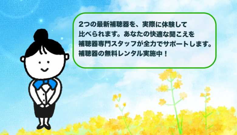 最も大切なのは、お客さまの聴力状況、生活スタイル、ご予算に最適な機種を選ぶことです。当店では2週間の無料レンタルサービスを実施しており、実際の生活環境で両機種を比較していただくことができます。